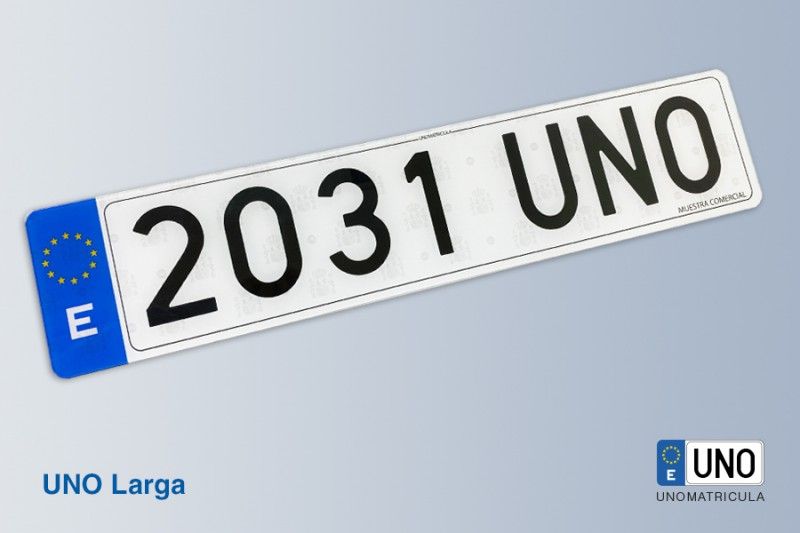 3800125817425Matrícula larga normalPosible colocación delantera y trasera. La UNO Larga (520x110mm) está 100% homologada por el Ministerio de Industria.Homologación: PM-02.4015-S (antes TPPR2015 y TPPR5054).También en formato regional (con inicial de provincia).