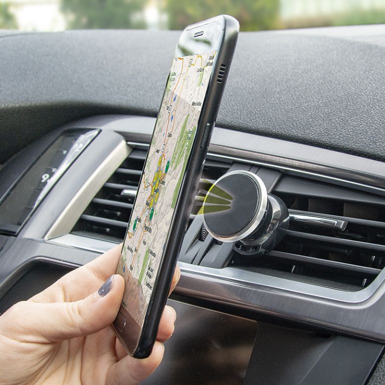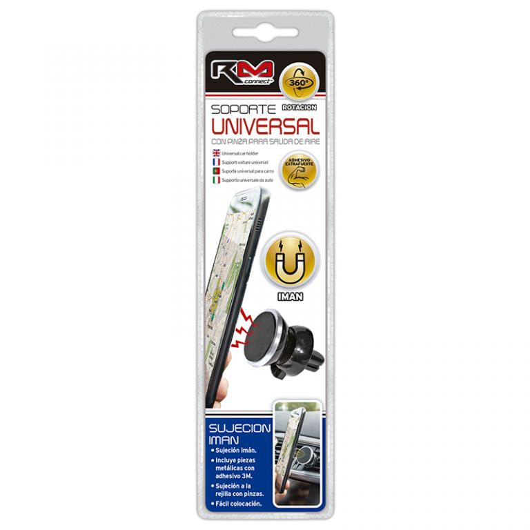 8424099021043Descripción::RM soporte móvil coche para rejilla del aire, super magnético, universal giratorio 360°. Con este magnético soporte móvil coche compacto, puede colocar su teléfono en la ventilación y liberar sus manos sin bloquear la visión. La instalación del soporte para teléfono de coche es muy sencilla. Solo necesita conectar el clip de silicona del soporte a la ranura de ventilación sin preocuparse por rayar, y luego instalar la placa de metal en la parte posterior del dispositivos o la funda del teléfono. Puede instalar o quitar el dispositivos del soporte móvil coche con una mano, es una buena ayuda para su viaje.Características:- Con pinza para salida de aire- Soporte universal- Adhesivo extrafuerte- Sujeción imán- Incluye piezas metálicas con adhesivos 3M- Sujeción a la rejilla con pinzas- Fácil colocación- Rotación 360°