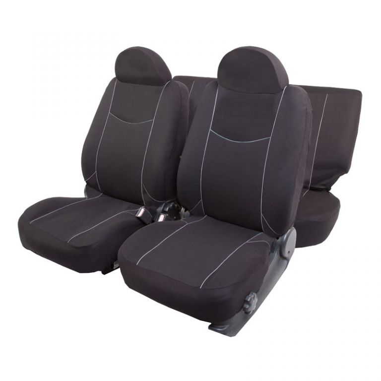8424099784375Descripción:Juego de fundas que protegerán los asientos originales de tu coche. Su acabado en negro dan un aspecto tranquilo y elegante a los asientos del vehículo. Estas fundas son compatibles con los airbags delanteros, son fáciles de colocar y se adaptan a la mayoría de modelos de coches del mercado. 6 piezas: 2 piezas asientos delanteros, 2 piezas traseras, 2 piezas cabezales.Características:-Color: Negro.-Lavable e Higiénico.-100% Poliéster.-Compatible con Airbag.-Transpirable efecto refrescante.-Confortable.-Perfecta sujeción mediante gomas.-Sin cremallera detrás.* 2 piezas asientos delanteros + 2 piezas traseras + 2 cabezales.