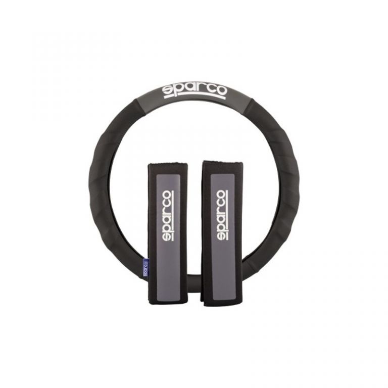 6922516311200Marca sparco, 1 juego de 2 almohadillas + 1 funda de volante Almohadillas 100% polyester gris, almohadillas 100% lavables, almohadillas universales Funda de volante antideslizante, funda de volante lavable, funda de volante 100% polyester
