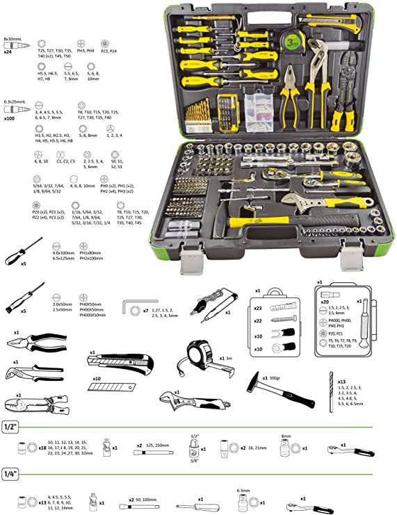 ESTUCHE DE HERRAMIENTAS 303 PZS CON VASOS HEXAGONA