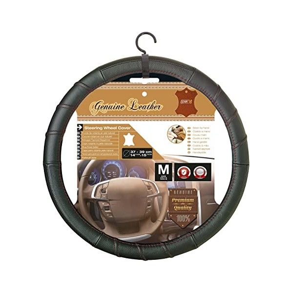 CUBRE VOLANTE PIEL NEGRA HILO ROJO 37-39CM