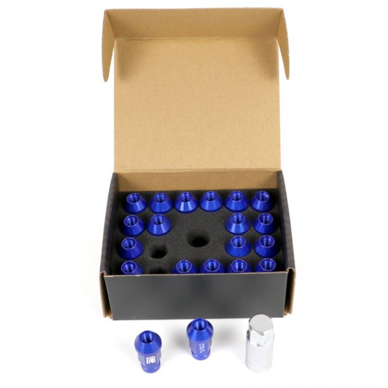 8434207215394MATERIAL: Tuercas para ruedas de coche de aluminio 7075.MEDIDAS: Tuercas para ruedas con métrica M14x1.5, llave de 19 y largo roscado de 40mm.COLOR: Set de tuercas de rueda de coche en color azul.SET: Caja de 20 tuercas + llave.