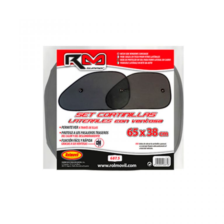 8424099068758- Protege a los pasajeros del calor y deslumbramiento.- Permite ver a través de ellas.- Fijación mediante ventosas.