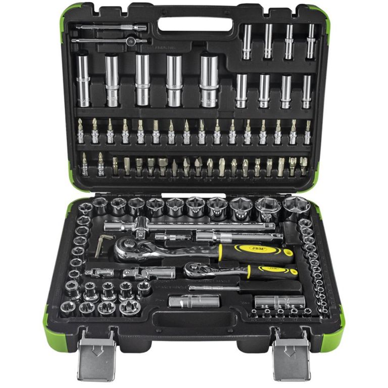 Maletín de herramientas profesional1 Carraca universal de 72 dientes de 1/2" con expulsador de vaso.1 Adaptador de cabezales 1/2"*5/16".5 Vasos métricos largos de 1/2", medidas: 14, 15, 17, 19 y 22mm.17 Vasos métricos de 1/2", medidas: 10, 11, 12, 13, 14, 15, 16, 17, 18, 19, 20, 21, 22, 24, 27, 30 y 32mm.8 Vasos Torx de 1/2" medidas: E10, E11, E12, E14, E16, E18, E20 y E24.2 Vasos de bujía de 1/2", medidas: 16 y 21mm.2 Barras de extensión de 5" y 10".1 Articulación universal de 1/2".1 Adaptador 3/8" hembra-1/2" macho.1 Carraca universal de 72 dientes de 1/4" con expulsador de vaso.18 Cabezales para el destornillador de punta:PH: #1, #2.PZ: #1 y #2.HEX: 3, 4, 5, 6mm.SL: 4, 5.5, 6.5mm.TX: 8, 10, 15, 20, 25, 27 y 30mm.1 Mango destornillador de 1/4".1 Articulación universal de 1/4".1 Mango corredizo de 1/4".2 Barras de extensión de 2" y 3".13 Vasos métricos, medidas: 4, 4.5, 5, 5.5, 6, 7, 8, 9, 10, 11, 12, 13 y 14mm.8 Vasos largos de 1/4", medidas: 6, 7, 8, 9, 10, 11, 12, 13mm.5 Vasos Torx de 1/4", medidas: E4, E5, E6, E7 y E8.17 Cabezales (8 mm):HEX: 7, 8, 10, 12, 14 mm.SL: 8, 10, 12 mm.PH: #3, #4.PZ: #3, #4.TX: 40, 45, 50, 55, 60 mm.3 Llaves Allen: 1.5, 2, 2.5mm.
