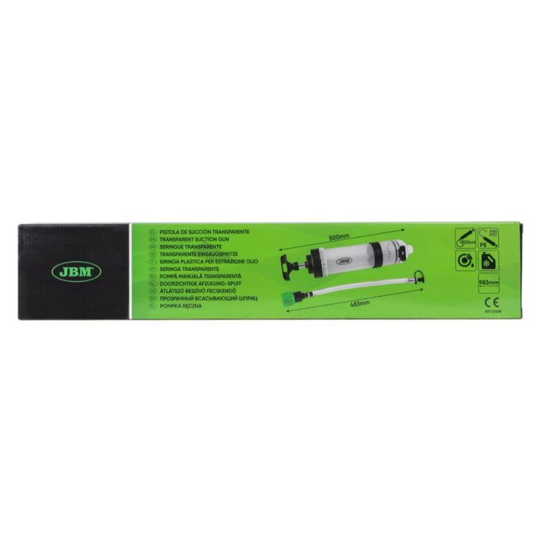 8435034524987Fabricada en polipropileno.Cuerpo transparente.Apta para uso con aceites de transmisión y diferenciales.Resistente a líquido de freno y anticongelantes.Cap. 1.500mlCapacidad 1,500mlMaterial Polipropileno/PolypropyleneLargo del tubo 483mmLargo de la pistola 500mmPeso 0,85Kg