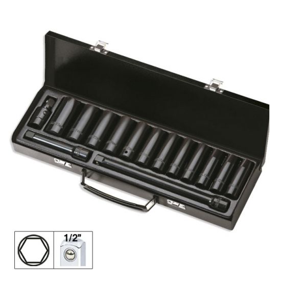 SET 15 PIEZAS IMPACTO CON 12 VASOS LARGOS 1/2" HAX