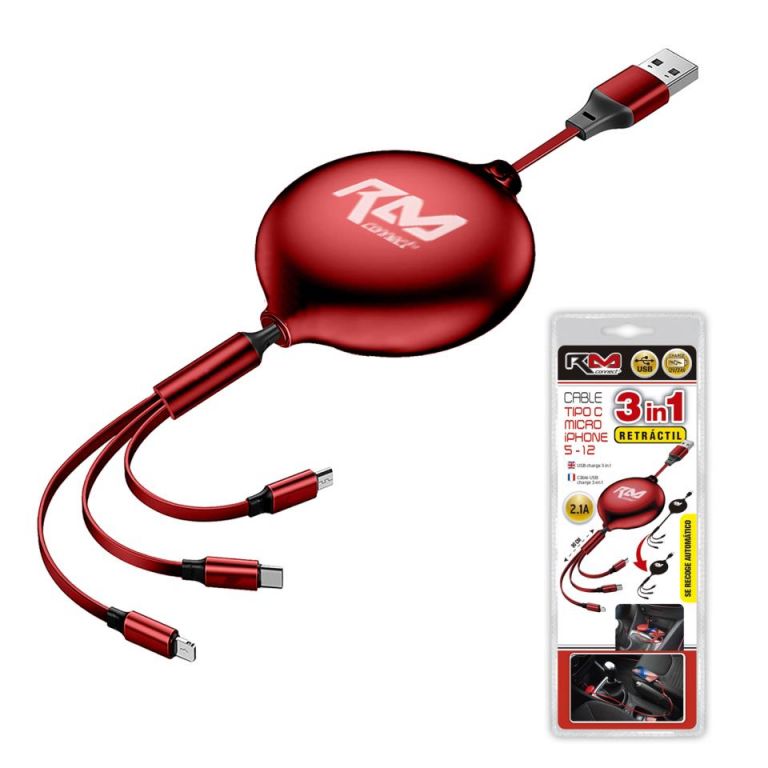 CABLE CARGADOR "ENROLLABLE" RM CONNECT USB 3 EN 1