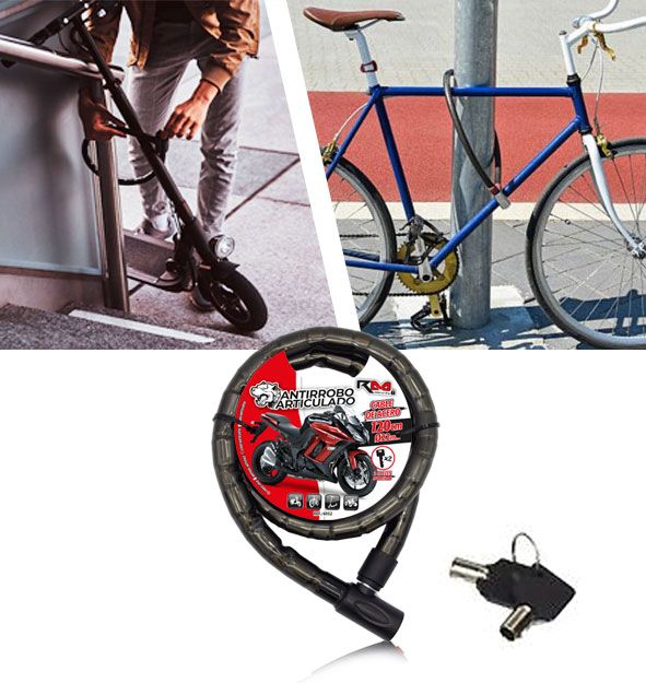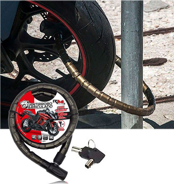 8424099060523Cable de acero 120cm, diámetro 22mm incluye 2 llaves tubularesRecomendaciones:- Recuerde quitar el antirrobo antes de arrancar- Lubrique regularmente el sistema de cerraduraApto para motocicletas, bicicletas, patinetes y quads