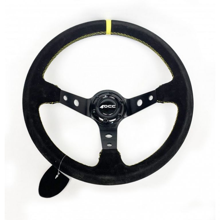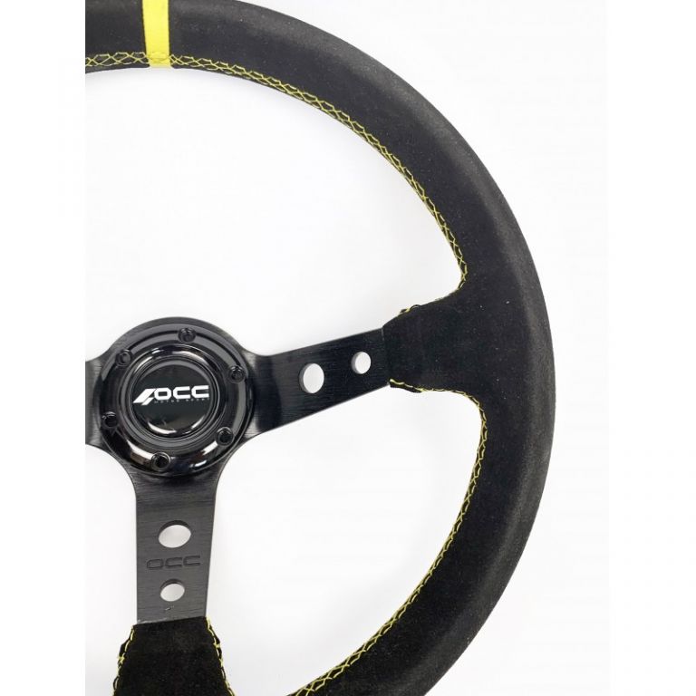 8434207003458GENERAL: Volante de competicion OCC Motorsport modelo Track original y de calidad diseñado para proporcionar gran elegancia a tu coche. Esta decoracion extra hara que tu vehiculo tenga un look mas atractivo. Es un volante desplazado con 6 tornillos de cogida.MATERIAL Y COLOR: Volante con terminacion en piel vuelta para generar una comoda y suave sensacion al colocar las manos en el volante. Volante de coche color negro, ribete amarillo y costuras amarillas. Cuenta con 3 brazos de aluminio negro. Por otro lado, es un volante coche deportivo antideslizante. Esta caracteristica es fundamental para un mayor confort, ya que las manos no se te resbalan. ¡Conseguiras un mayor control durante la conduccion!MEDIDAS: Volante 350mm de diametro. Es el tamaño idoneo en volantes para coche, ya que te ayudara a conducir de una manera mas segura y comoda. Ademas, podras realizar curvas con mucho menos esfuerzo. Este volante racing tiene un grosor de 32 mm: ideal para un agarre mas efectivo. Es un volante desplazado que cuenta con una profundidad de 90 mm.INSTALACION: Volante de facil instalacion, aunque se recomienda una instalacion profesional. Importante: El cono de volante se necesita para su instalacion. Volante compatible con conos/piñas de volante OCC Motorsport, Sparco, OMP, etc. Este volante universal se puede poner en la mayoria de modelos de coche. Además, es un volante de carreras popularmente usado para simuladores. Por otro lado, si tienes pensado poner este volante en un vehículo de calle, solo podras homologarlo si el coche no tiene airbag en el volante. En el caso de que tu coche no lleve airbag, podras homologarlo sin problema (para homologar hay que hacer proyecto y reforma de laboratorio para incluirlo en ficha tecnica).REFERENCIA: OCCVOL003Este volante de coche es un producto original de la mejor calidad. Ademas, vas a lograr una nueva experiencia de conduccion y mejoraras la apariencia de tu coche. Debes saber que, si tienes pensado poner este volante en un vehículo de calle, solo podras homologarlo si el coche no tiene airbag en el volante. Por otro lado, si quieres el volante para utilizarlo en simulador de carreras, es muy probable que puedas hacerlo. La mayoria de nuestros volantes pueden utilizarse con este fin. Apuesta por el volante deportivo de OCC Motorsport y no te arrepentiras. ¡Gran calidad al mejor precio!