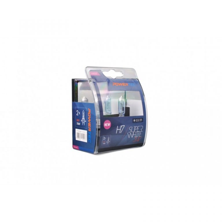 5901508532473Lámpara halógena PowerTec 24V 70W H7 SuperWhiteLa lámpara PowerTec H7 Super White garantiza hasta un 100% más de luz en la carretera en comparación con las lámparas halógenas estándar.Una capa azul aplicada no causa el descenso de calidad ni de cantidad de la luz emitida.Gracias a ella obtenemos un efecto de color perfectamente blanco, que es menos agotador para la visión del conductor, los senales de tráfico y líneas en la carretera son mejor visibles.El rayo luminoso alargado permite ver obstáculos más rápido, lo que garantiza mayor seguridad en la carretera.Las innovadoras lámparas halógenas PowerTec se caracterizan por su alta durabilidad y resistencia a altas temperaturas y vibraciones.En la producción se ha utilizado vidrio de cuarzo templado y acero de alta calidad.El vidrio de cuarzo con protección UV previene danos del faro y deslumbre.La vida útil media de las bombillas es de aproximadamente 300 horas de trabajo, lo que coloca a las bombillas M-Tech en el mismo rango que los productos de marcas como Bosma, Narva o Tungsram.DESCRIPCIÓN:-Distancia focal excelente ajustada-Construcción de filamento sólida-Rica mezcla de gas-Protección UV-Fabricados de cristal de cuarzo-Base de acero templado-Embalaje DUO eleganteESPECIFICACIONES:Tipo: H7Casquillo: Px26dHomologación: E4Potencia: 70WTensión: 24VSímbolo: PTXSW7-DUOHasta un 100% más de luz.
