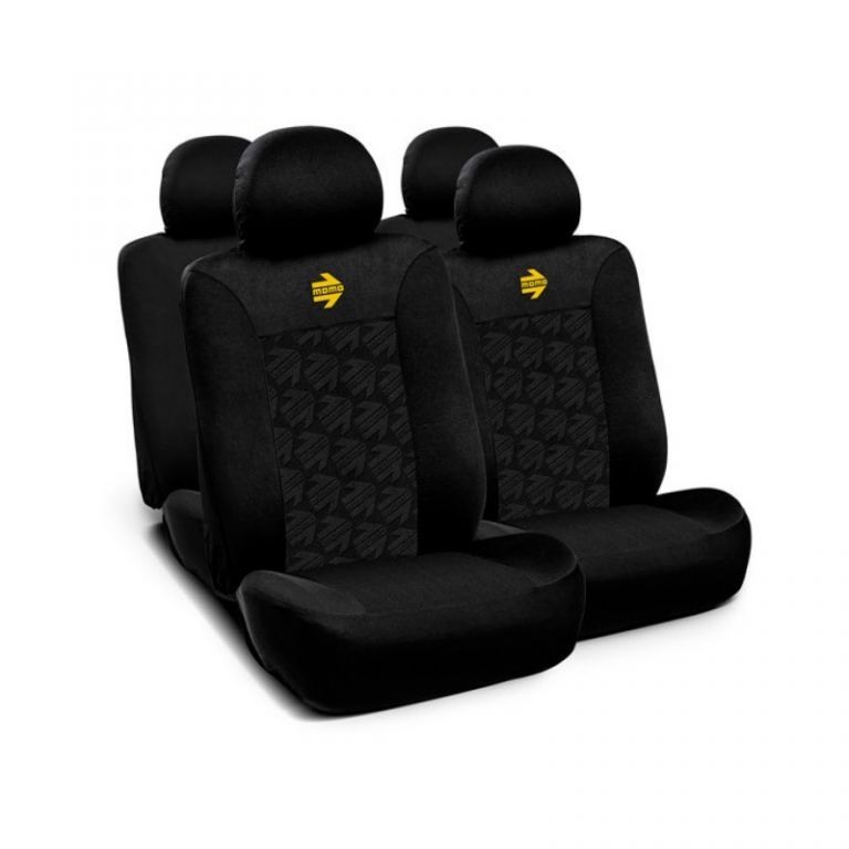 8051380000151- GENERAL: Juego de cubreasientos MOMO original. Set de 11 piezas para el coche completo: seis delanteras (dos bancos, dos respaldos y dos reposacabezas) y cinco traseras (un banco, un respaldo y tres apoyacabezas). Fundas asientos coche universales y adaptables al 99% de los vehiculos del mercado. Además, protegerá los asientos de tu coche contra el desgaste y la suciedad, mejorando el interior del vehículo. MOMO significa moda y calidad. Apuesta por una de las mejores fundas para asientos de coche y dale un toque original a tu vehículo.- MATERIAL: Cubre asientos MOMO Italy fabricado 100% en poliéster. Estas fundas para asientos de coche están inspiradas en la excelencia de su fabricación, optima calidad, respeto a todos los estándares de seguridad y los mas altos niveles de rendimiento.- DISEÑO Y MEDIDAS: En cuanto al diseño, estas fundas para los asientos del coche vienen con cremalleras en color negro y costuras en gris. La parte superior lleva el logo MOMO en color amarillo. Son fundas lavables con un paño húmedo. Por otro lado, son juegos de cubre asientos universales y están hechos para que se puedan colocar en casi todos los coches.- SEGURIDAD: Este juego de fundas para los asientos del coche pasan las pruebas de las costuras especiales para los airbags. Decántate por los cubre asientos deportivos MOMO, la marca por excelencia en el mundo del motor reconocida por la calidad de sus productos, la innovación, la originalidad de sus diseños, tecnología e imagen.