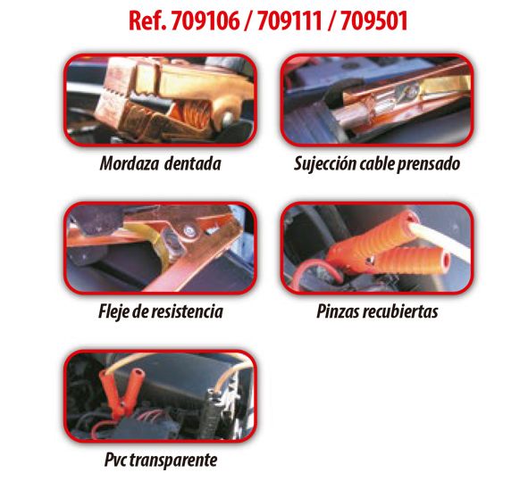 8424083795011- Recubrimiento del cable en PVC transparente.- Pinzas recubiertas en PVC.- Calidad del cobre 100%.- Los maletines de cartón contienen bolsa portacable.- 500 amp.- Seccion: 25mm.- Longitud: 3,5m.- Envase: Display