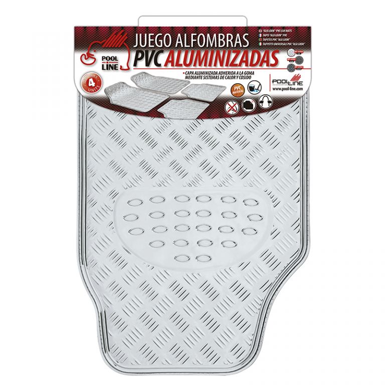 8424083664560Juego alfombras aluminizadas modelo "RM CONFORT".Fabricado en >PVC<.Color PlataMaterial resistente y antideslizanteFácil colocaciónFácil limpiezaSin olorPeso total= 3.100 kg.Presentación con percha y solapa