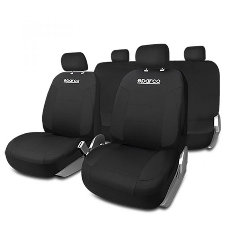 6922516334520Fantástico juego completo de fundas de asiento para coche Sparco modelo Strada en color negro. Juego completo de fundas y 5 cabezales.Ajuste universal, se adaptan a la mayoría de asientos de coche del mercado. Instalación superfácil y rápida.Fabricadas en polyester + Foam de 3 mm.Fundas de asiento con abertura lateral.Asientos traseros con 3 cremalleras para poder instalarlas a conveniencia modo 1/3 + 2/3, 1/2 + 1/2 o 2/3 + 1/3Fundas de asiento 100% lavables a máquina.Disponible en 4 colores: Negras, Azules, Grises y Rojas.