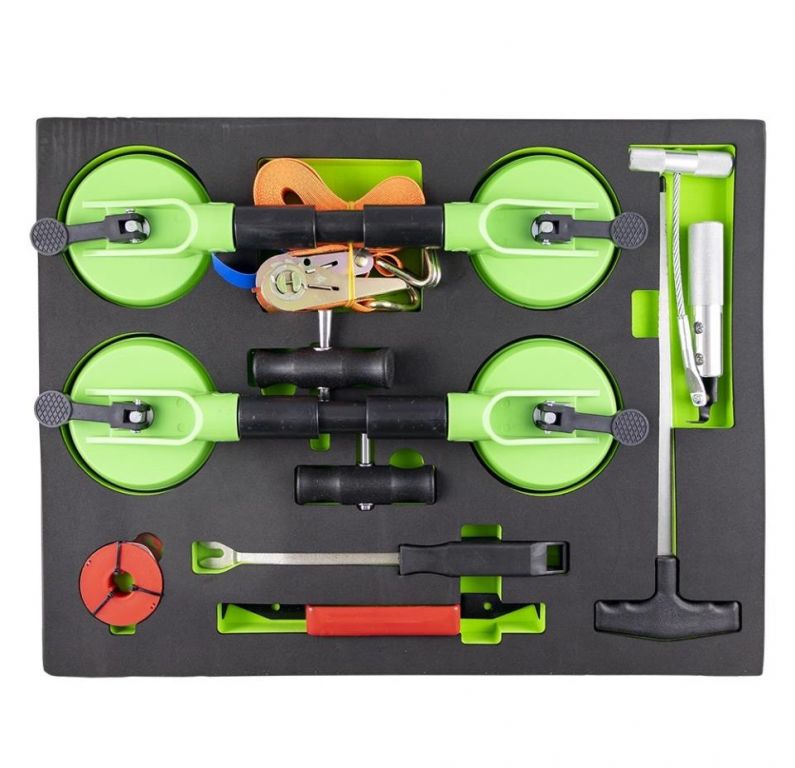 8435034140620Módulo EVA con:1x Útil extractor de molduras1x Palanca para extraer la goma1x Gancho extractor1x 1.8m de alambre de corte2x Mangos para el alambre de corte1x Pasa-cables2x Ventosa extractora1x Correa con trinquete