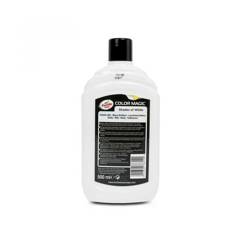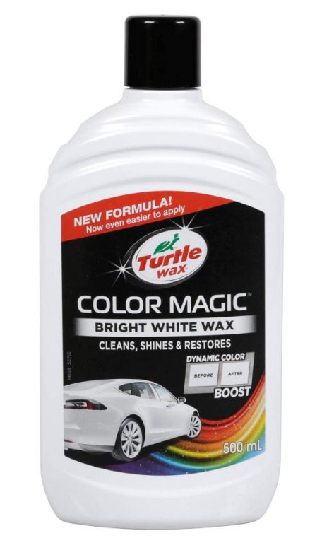 5010322783142Color Magic Blanco 500ml. Cera con color que limpia, abrillanta, restaura y da color.Color Blanco. Nueva fórmula, ahora más fácil de aplicar. Es rápido y fácil de usar, limpia suavemente la superficie de la pintura ocultando los pequeños arañazos y marcas.Botella de 500 ml.