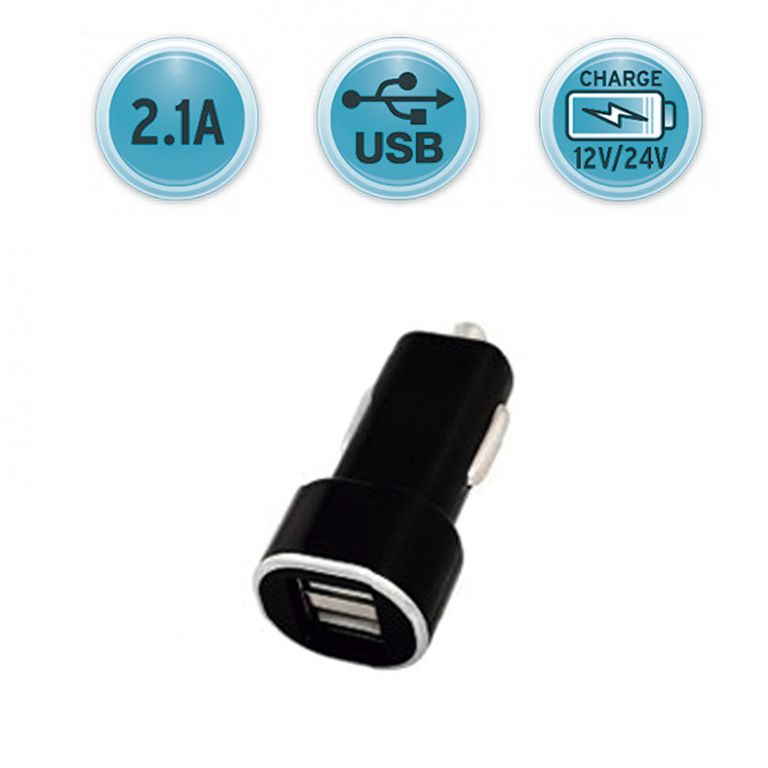 647166472052- Cargador mechero doble salida USB 2.1A .- Color negro .