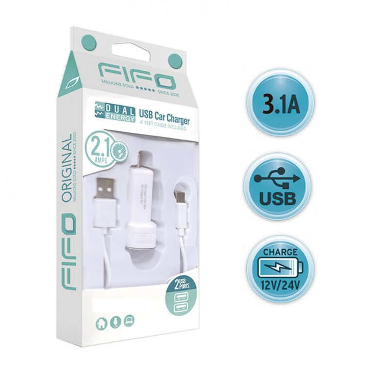 694155600217- Cargador mechero doble salida USB 3.1A y cable conexión Iphone.