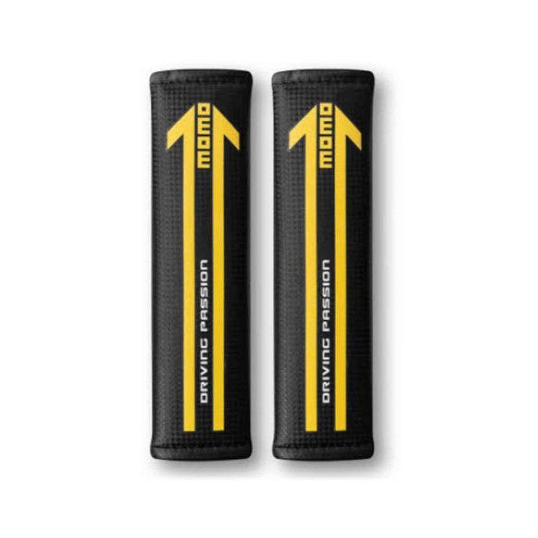 8051380000274GENERAL: Set de 2 piezas de almohadillas MOMO universales que sirven para omitir la presion del cinturon de seguridad en caso de frenado o accidente. Son fundas para cinturon coche de calidad que te aportarán gran comodidad y evitarán que te claves el cinturón durante la conduccion. Se puede decir que son almohadillas cinturon coche que reflejan la verdadera herencia de la marca MOMO, desde el principio hasta 1964. DISEÑO: Protectores para cinturones de coche de la marca MOMO en color negro mate para darle un toque deportivo a tu vehiculo. Son almohadillas que vienen con el logo MOMO en amarillo con flecha alargada vertical, lo que provoca un contraste entre estos dos colores muy original y llamativo. También incluye la frase Driving Passion en color blanco. Si decides usar estos cubre cinturones MOMO, conseguirás que tu coche tenga un look más atractivo. MATERIAL Y LAVADO: Estas almohadillas MOMO son de aspecto de carbono. La marca MOMO utiliza siempre materiales de la mejor calidad, lo que hará que tus fundas para cinturon coche te duren años. Además, son lavables y puedes limpiarlas con un paño húmedo, por lo que las podrás mantener limpias y en buen estado durante mucho tiempo.