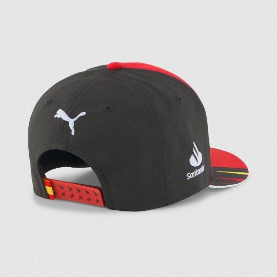 4064537260098Gorra oficial de Carlos Sainz en la temporada 2022 del Mundial de F1 con el equipo Ferrari.Esta es la gorra oficial del equipo Ferrari que han lucido Carlos Sainz en la temporada 2022. La gorra es de color rojo y negro con los colores de la bandera española en la visera y el logo de Carlos Sainz y su peculiar 55.