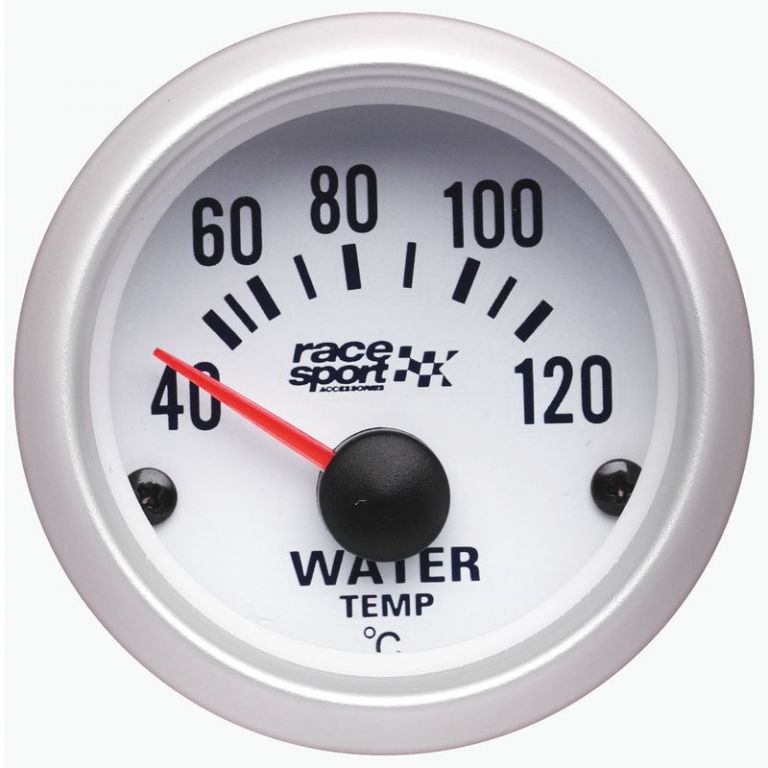 8424332665041DescriptionTermómetro de agua Race Sport para controlar los grados en celsus de la temperatura del agua del vehículo a fin de estar informado de las condiciones en las cueles se encuentra el coche. Estar anticipado a lo que pueda pasar es el deseo de cualquier ACCESORIOS DE VIAJEro, por ello, este termómetro te posicionará en una posición avanzada. También podrás combinarlo con indicadores como termómetros o manómetros. Su acabado en blanco con detalles de plateado, le dará a un tu coche un toque deportivo y energético. Este termómetro de agua es de 12 v, y 52mm de diámetro.12vTemperatura del agua en CelsiusCombinable con indicadores como termómetros o manómetrosIluminadoPlateado