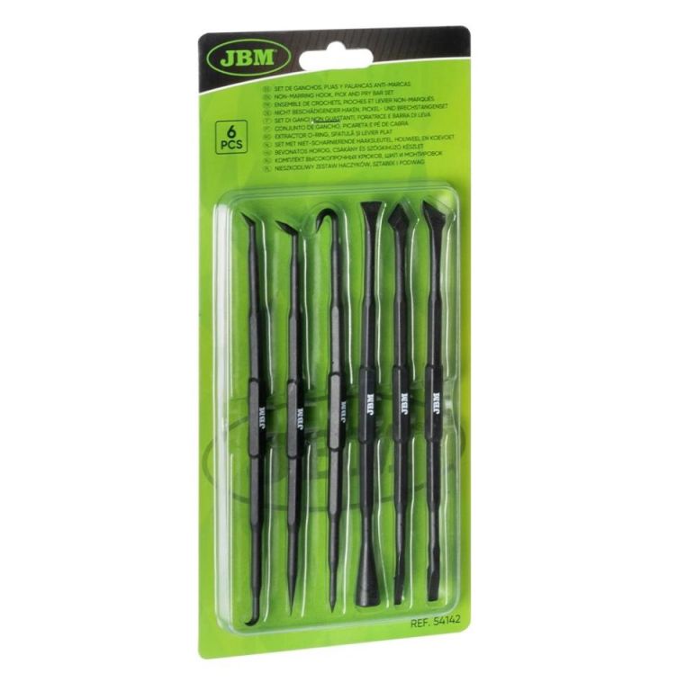 8435034541427Herramientas para la extracción, limpieza y trabajo con clips plásticos, juntas, cables, conectores eléctricos, etc.- No daña materiales blandos- No rasca la pinturaContiene:2 puntas en gancho2 puntas rectas2 puntas en ángulo6 puntas con palancas