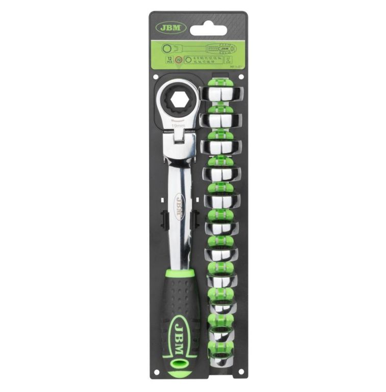 LLAVE CON TRINQUETE + CABEZAL INTERCAMBIABLE 12PCS