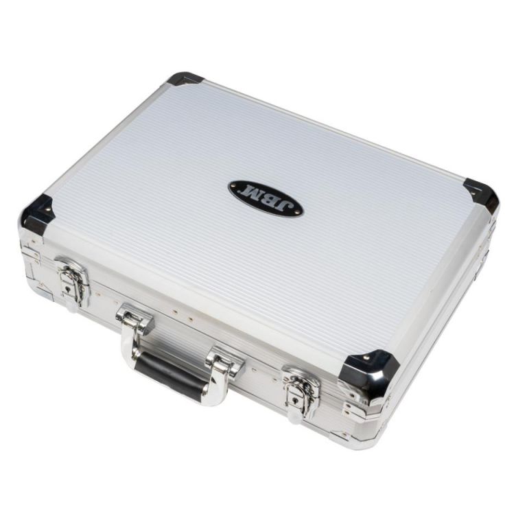 8435034534443MALETIN DE HERRAMIENTAS DE ALUMINIO.Con 3 subdivisiones, de sujeción ajustable, esquinas reforzadas.Cierre con llave.CONTENIDO:BANDEJA 1Herramientas de 1/2"9 vasos hexagonales de 1/2": 10, 11, 12, 13, 14, 15, 17, 18, 19mm2 barras de extensión: 75, 150mm1 vaso de bujía: 16mm1 carraca de 72 dientes con expulsor de vasos1 adaptador 3/8" hembra-1/4" machoHerramientas de 1/4"8 vasos hexagonales de 1/4": 4, 4.5, 5, 5.5, 6, 7, 8, 9mm1 mango destornillador (150mmL)1 adaptador de cabezales (6mm)4 destornilladores planos: 3.0x75, 4.0x100, 6.5x125, 8x150mm2 destornilladores phillips: PH1x80, PH2x100mm1 destornillador de precision: PH00×50mm1 destornillador de precision: SL2.5×50mm1 comprobador de corrienteBANDEJA 29 llaves fijas: 6x7, 8x9, 10x11, 12x13, 14x15, 16x17, 18x19, 20x22mm9 llaves allen: 1.5, 2, 2.5, 3, 4, 5, 6, 8, 10mm1 sierra6 hojas para sierraBANDEJA 31 lima 200mm1 cúter 18mm10 recambios cutter en caja de plástico1 alicate para terminales 220mm1 alicate universal 180mm1 alicate corte diagonal 160mm1 alicate ajustable 250mm1 alicate de punta alargada 160mmSet de puntas en caja de plástico:30 puntas1 adaptador para puntas1 martillo con mango de fibra 300g1 cinta métrica 3m
