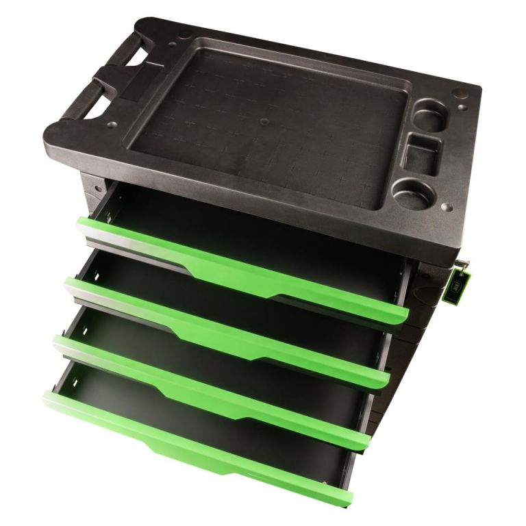 8435034545036Recubrimiento resistente a arañazos.Capacidad de carga de cada cajón de hasta 40kg cada uno.Bandeja superior de plástico, ergonómica, capacidad de carga de hasta 125kg.Área de almacenamiento lateral.Sistema de cierre interno de seguridad.Ruedas de 5": 2 fijas y 2 giratorias, una con freno.Tamaño total: 775 x 466 x 960 mmTamaño total con ruedas: 750 x 515 x 997 mm6 cajones: 533 x 400 x 74 mm1 cajón: 533 x 400 x 153 mmTamaño de la rueda: 5"
