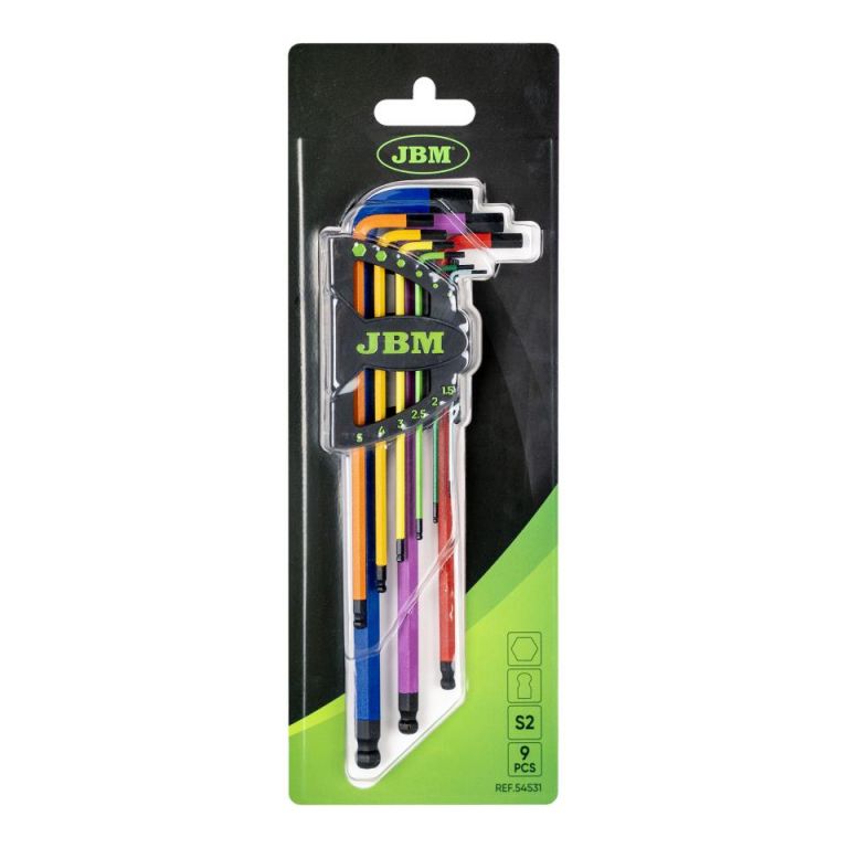 8435034545319Este set contiene 9 llaves que están fabricadas con una punta redondeada extralarga que proporciona un mayor alcance y mejora el trabajo a áreas de difícil acceso. Sus distintos colores favorecen la distinción entre las piezas.Medidas: 1.5, 2, 2.5, 3, 4, 5, 6, 8, 10mmLongitud perfil largo: 90, 98, 110, 125, 138, 157, 178, 196, 220mmLongitud perfil corto: 14, 16, 18, 20, 24, 28, 31, 35, 40mm