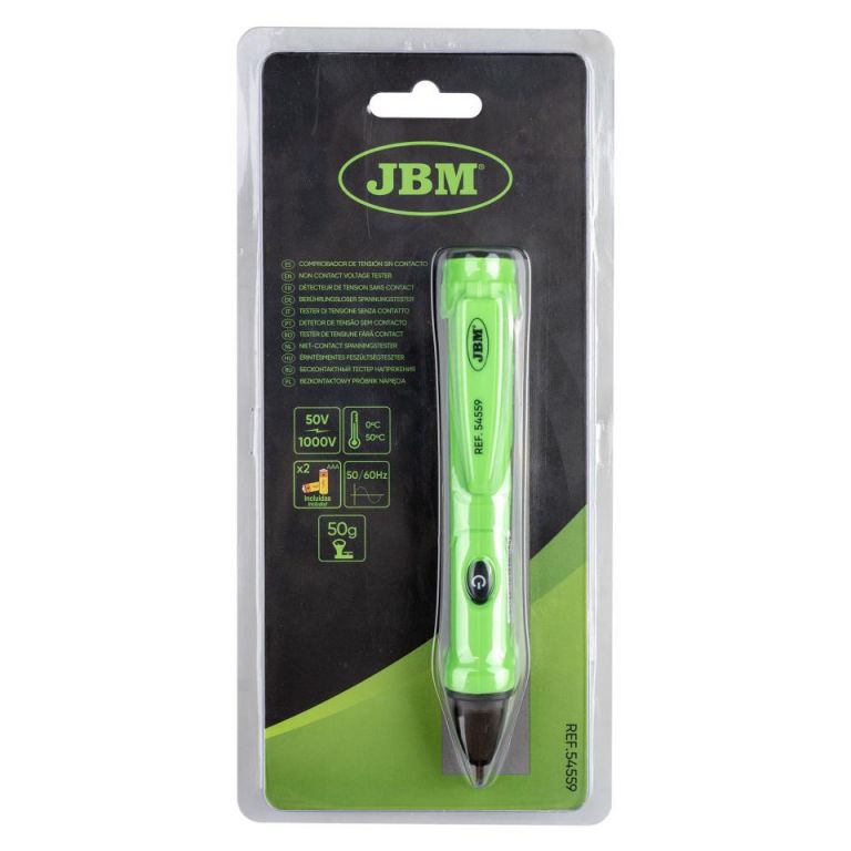 8435034545593DetallesEsta herramienta eléctrica portátil detecta voltaje en circuitos sin contacto físico para identificar corriente en cables, tomas, interruptores, y otros dispositivos eléctricos.Es esencial para seguridad eléctrica, permitiendo a usuarios verificar rápidamente si un circuito contiene corriente, evitando descargas accidentales.ESPECIFICACIONES TÉCNICAS:Rango de detección de voltaje 50V a 1000VACRango de frecuencia 50/60 HzBaterías Dos AAA 1.5VTemperatura de operación 0 a 50°C (32 a 122°F)Tempteratura dealmacenamiento-10 a 60°C (14 a 140°F)Humedad 80% max.Altitud 2000 metrosGrado de contaminación 2Cumplimiento de seguridad CAT IV 1000VDimensiones 143 x 25 x 21mm (5.63 x 0.98 x 0.82in)Peso 50g (1.7607)