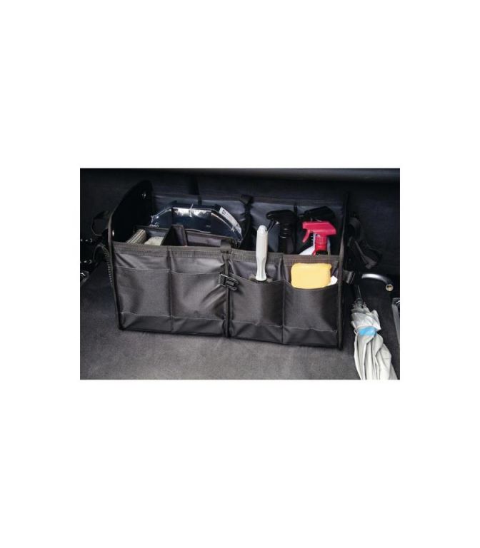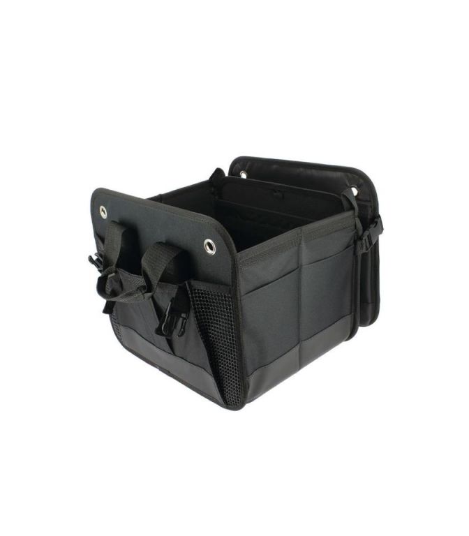 8424332080349Organizador de maletero de coche, plegable con multicompartimentos. Diseño innovador, para poder ser pleglable tanto del todo como a la mitad, con subdivisiones y bases de quita y pon internas para utilizarlo como mejor convenga para tener el maletero bien ordenado. Dispone de asas para poder transportarlo con mayor comodidad, base con cintas de velcro para mayor agarre en maleteros de moqueta y arandelas metálicas en las esquinas por si se quisiera atar mediante ganchos o eslingas. Dispone de malla y de prácticos bolsillos por la parte exterior como se puede apreciar en las imágenes.