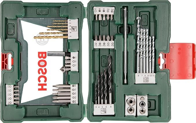 3165140751544- Seis brocas, con recubrimiento de nitruro de titanio para madera duray blanda- Perforar de forma rápida y limpia en los metales más diversos, plexiglás y plásticos duros (no utilizar para aluminio)- Perforación de hasta 40 %- Brocas con punta de metal duro resistente pare mampostería, piedra caliza, piedra natural y piedra sintética- Veintitrés puntas de atornillar con cabeza Phillips, Pozidriv, Torx, hexagonal y de ranura longitudinal- Soporte universal magnético para un cambio rápido de las puntas de atornillar- Utilizar la protección necesaria según la aplicación: gafas protectoras y máscara contra el polvo.