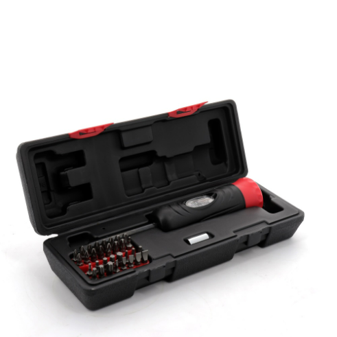 8435034518306Ideal para aplicaciones de automoción como el reemplazo del airbag, fallo de sensores y juntas de apretado de alta precisión. Construcción robusta con visor de lectura para un preciso ajuste entre dos finales.Incluye los bits de tamaños comunes y adaptador (1/4''de unidad). Con el mango contorneado en goma para mayor agarre y comodidad.Se suministra en estuche compuesto. Se puede usar tanto hacia la derecha y la izquierda a roscar a mano.CONTENIDO:- Puntas Phillips: 0, 1x2, 2x3, 3x2.- Plano: 3, 4, 5, 6, 7mm.- Hexagonal: 2, 2.5, 3, 4, 5, 6 mm.- PZ 1x2, 2x3, 3x2.- Torx: T10, T15, T20, T25, T30, T40.- Driver.- Adaptador.ESPECIFICACIONES TÉCNICAS:· Exactitud: CW: +/- 4%.· Rango de operación: 2-10 N-m.· Unidades de selección: N-m, in-lb.· Largo (mm): 242.· Dado: 1/42.· Vida útil: 2000 ciclos.