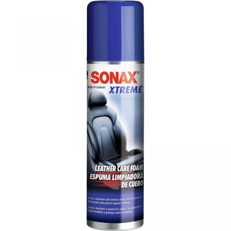 4064700289109Producto especial sin silicona para la limpieza y el cuidado del cuero auténtico y artificial (incluido el cuero vegano), como asientos de coche, monos de moto, bolsos, muebles y otras piezas de cuero liso. Sin colorantes, adecuado para cuero de cualquier color. Elimina la suciedad, el aceite y la grasa y devuelve la flexibilidad al cuero. Las superficies tratadas no se vuelven resbaladizas. La cera de carnauba de alta calidad y la auténtica cera de abeja garantizan una excelente impregnación. Al mismo tiempo, la superficie queda protegida para que no se vuelva a ensuciar. La espuma es especialmente adecuada para vehículos con asientos calefactados y para superficies de cuero perforado. Con olor a cuero y protección UV. No apto para ante, anilina, nobuk ni gamuza.Aplicación del productoAspire a fondo las superficies. Agite bien el bote. Pruebe la solidez del color y la resistencia a la abrasión en una pequeña superficie antes de utilizarlo. Pulverizar el producto sobre la SONAX Almohadilla para plásticos (n.º art. 04172000) o un paño de microfibra (p. ej. SONAX Paño de microfibra para la tapicería y cuero (n.º art. 04168000) y distribuir uniformemente. Aplíquelo siempre en toda la superficie (por ejemplo, en el asiento). Repita el proceso para las superficies muy sucias.ATENCIÓN: No aplicar sobre superficies calientes. Proteger del frío.