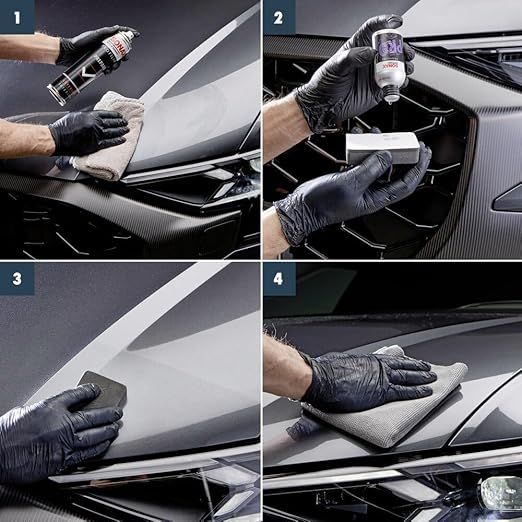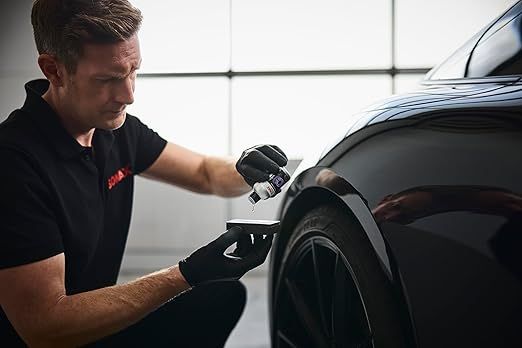 SONAX PROFILINE CERAMICCOATING CC Pro es un recubrimiento cerámico para pinturas, que ofrece una excelente durabilidad, hidrofobicidad y autolimpieza en una sola capa. Para colores aún más intensos y máxima suavidad superficial. La fórmula se ha desarrollado especialmente para usuarios experimentados y para las necesidades de los detallistas profesionales. El tiempo de reacción de la capa con la laca se ha reducido significativamente, haciendo que el proceso de sellado sea considerablemente más corto y más eficiente en general. Juego con 4 esponjas de aplicación.Limpie a fondo la pintura y, si es necesario, púlala con una pulidora hasta conseguir un brillo intenso sin arañazos ni hologramas. Inmediatamente antes del sellado, las superficies deben estar absolutamente limpias. Para ello, rocíe SONAX PROFILINE Prepare (02373000) sobre un paño de microfibra de tacto suave (04510000) y limpie cuidadosamente todas las superficies a tratar. Dosifique unas gotas de CC Pro sobre el lado claro de una almohadilla de aplicación y aplíquelo finamente sobre la pintura con movimientos transversales. La superficie a tratar debe ser de aproximadamente medio metro cuadrado (1/4 de capó). Elimine el exceso de producto con una toalla de revestimiento (04511000) sin dejar que reaccione. Trate todo el vehículo de esta forma y deje que el revestimiento se endurezca durante al menos 2 horas. Durante este tiempo, el vehículo debe mantenerse en un entorno limpio y seco y las superficies no deben tocarse. Si el aplicador empieza a endurecerse durante la aplicación de CC Pro, utilice una almohadilla nueva. El contenido de la lata es suficiente para dos vehículos completos. No aplique el producto sobre superficies calientes y no deje que se seque. No lave el vehículo en los primeros 7 días después del sellado. Importante: No utilice limpiadores altamente alcalinos, ya que pueden atacar la capa protectora.ATENCIÓN: Asegurar una buena ventilación durante el procesado.