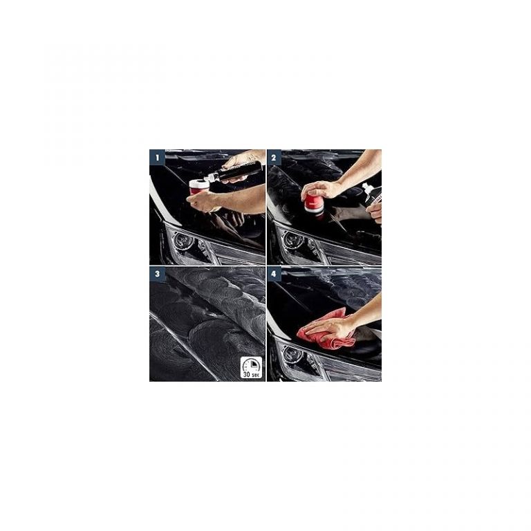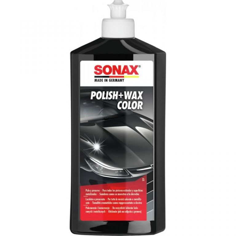 4064700296107SONAX Abrillantador + Cera Negro es un abrillantador con pigmentos negros especialmente desarrollado para abrillantar coches con pintura negra. SONAX Pulimento + Cera Negro limpia a fondo la pintura, elimina arañazos superficiales y devuelve el brillo al coche. Como los pigmentos son negros, este abrillantador da color a la pintura, ¡dándole al coche un color más intenso y haciéndolo parecer aún más negro!Pulir el coche de negroPule tu coche de negro con SONAX Pulimento + Cera Negro. Este pulimento contiene pigmentos negros que, al pulir tu coche negro, realzarán el color de la pintura, añadirán más brillo y harán invisibles los arañazos. No importa si la pintura de tu coche es negro sólido o negro metalizado, puedes pulir cualquier coche negro con SONAX Pulimento + Cera Negro.¿Cómo utilizar SONAX Abrillantador + Cera Negro?SONAX Pulimento + Cera Negro es fácil de usar. Sigue los siguientes pasos para aplicar y pulir correctamente el pulimento negro de SONAX en el coche.Asegúrese de que el coche está lavado y seco.No exponer el coche a la luz directa del sol. Preferiblemente en el interior o a la sombra.Aplicar SONAX Pulimento + Cera Negro sobre una almohadilla aplicadora del tamaño de una moneda de 2 Euros.Frotar SONAX Pulimento + Cera Negro sobre el coche haciendo pequeños movimientos circulares.Dejar secar el pulimento durante 5 minutos.Frote el SONAX Pulimento + Cera con un paño de microfibra seco y limpio.Ahora pasar a la siguiente parte en el coche.Características SONAX Pulimento + Cera NegroEl mejor pulimento para coches negrosSe puede utilizar en pinturas sólidas y metalizadasLimpia la pintura a fondoRestaura el brillo y la opacidadCamufla arañazosFácil de aplicar y pulirTambién se puede aplicar con pulidora