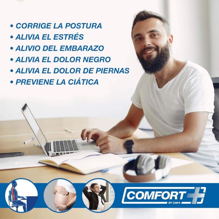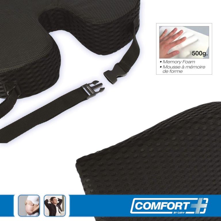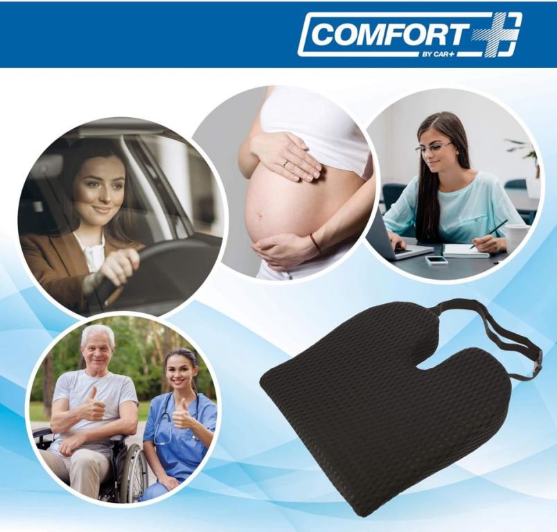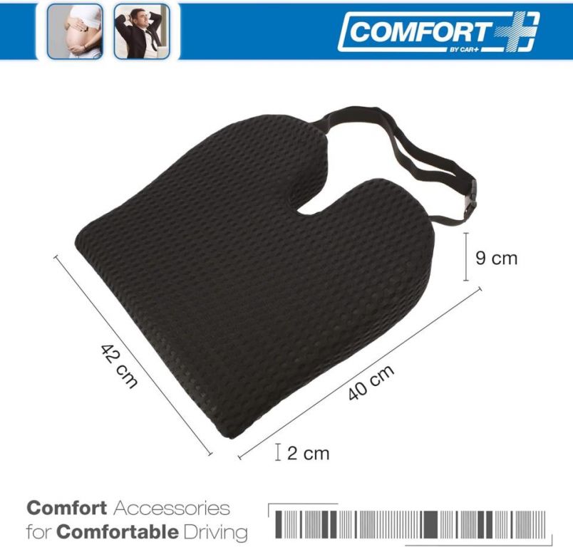 8424332645777El cojin ergonomico para asiento Car+ tiene un espacio especialmente diseñado para el cóccix; este espacio especifico para aliviar la tensión lumbar y alinear la columna vertebral de una manera natural, así mejorando su postura en el asientoEl núcleo de espuma visco elástica con memoria de forma confiere múltiples ventajas como un apoyo excelente, confort óptimo y resistencia a la deformación; el Cojin Car+ recuperara su forma despues de su uso y no se deformará, para seguir aportando sus cualidades ergonomicas día a díaEl cojín en cuña rectangular Car+ con su tamaño de 42x40 cm es adecuado para todo tipo de asientos de oficina, coche, de casa y de viaje; su base antideslizante lo hace la mejor opción para aumentar su comodidad sobre cualquier superficieLa funda de textil en acabado de malla 3D negra ofrece una maxima transpirabilidad; tambien es extraíble y se puede lavar, para que su cuidado nunca sea un problema