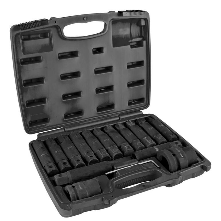 8435034510287DetallesEL SET CONTIENE DIFERENTES PUNTAS:- Hexagonales: H17, H19, H22, H24- Torx: T60, T70, T80, T90, T100 E18, E20, E22, E24- Adaptador: 1"- Adaptador: 3/4"- Allen: 4 mm