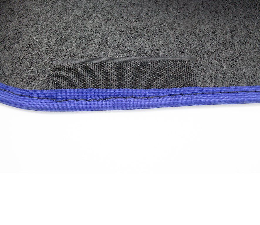- Color moqueta: Negro.- Color ribete: Azul.- Talonera: Goma.- Aspecto frontal: Dilour. - Medida alfombra delantera: Ancho: 46,5cm. Largo: 64cm. - Medida alfombra trasera: Ancho: 46,5cm. Largo: 31,5cm.- Fabricado en Europa.- Fijación: Velcro
