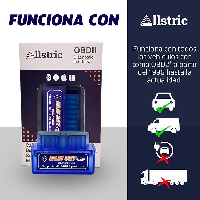 x001qssdxjAcerca de este producto- Producto: Maquina de diagnosis para coches elm327 bluetooth con más de 3000 definiciones genéricas de códigos en la base de datos y compatible con iOS, Android, Windows y Linux. El producto incluye una unidad del escáner obd2.- Funciones de diagnosis: Con este obd2 diagnosis bluetooth puedes leer y borrar los códigos de fallo de la luz de motor (incluidos específicos del fabricante y genéricos), restablece la luz del motor y visualizar datos en tiempo real. El OBD no puede detectar los códigos de error del airbag ABS, solo detecta el código de error del motor.- Monitoreo de parámetros: Nuestro lector obd y maquina diagnosis puede leer rápidamente y mostrar datos del sensor en tiempo real como sensores de O2, temperatura del refrigerante, comprobar la preparación I/M, ver el marco congelado y mucho más.- Fácil de usar y portátil: Ahorra tiempo y dinero al detectar los posibles problemas del coche y arreglar los simples por ti mismo. Recomendamos la App Torque. Esta maquina diagnosis coche es muy fácil de usar incluso si no estás familiarizado con la reparación del vehículo.- Compatibilidad: Funciona en cualquier vehículo con toma OBD. Admite protocolos OBD2: ISO15765 - 4 (can), ISO14230 - 4 (KWP2000), ISO9141 - 2, J1850 VPW, J1850 PWM. No admite camiones, tractores, híbridos o vehículos eléctricos.