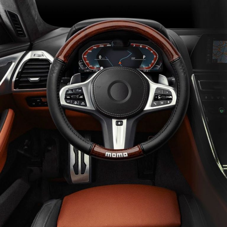 8051380001301GENERAL: Funda volante MOMO Luxury proteccion total color negro y marron fabricada con materiales resistentes al sol, agua, sudor, etc. Protegerá tu volante de arañazos y del desgaste. Es una funda de volante con la mejor calidad del mercado. Se puede decir que es un cubre volante MOMO que refleja la verdadera herencia de esta marca, desde 1964 hasta la actualidad.DISEÑO: Funda cubre volante funcional, de tacto agradable y gran comodidad de agarre. Esta funda de volante de coche le dará un toque fresco, moderno y personalizado a tu coche. Todos los detalles tienen un cuidado extraordinario, con costuras al milimetro en color negro y aspecto de madera para garantizar un diseño elegante. Funda volante deportivo que tiene el logotipo de MOMO en la parte inferior de color blanco.MATERIAL Y MEDIDAS: Funda para volante MOMO antideslizante compuesta por inserciones de PVC con aspecto de madera marron. Es un cubre volante coche muy agradable al tacto que mejora el agarre durante la conduccion, lo que significará un mayor control en la carretera, mejorando la seguridad en posibles emergencias. Esta funda volante rally es lavable y ha sido fabricada con materiales especiales para que no tome malos olores. En cuanto a las medidas, es una funda de volante con diametro desde 36,5 a 39cm (tamaño universal adecuado para la mayoria de volantes con un diametro de 37-38 cm).INSTALACIÓN: Funda volante universal de facil instalación, por lo que no tendrás ninguna complicación a la hora de ponerla. Lleva una etiqueta roja en el centro como guía para la conducción.