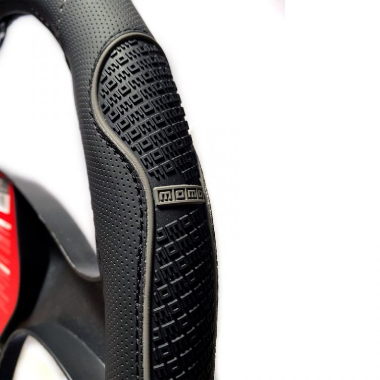 8051380000373GENERAL: Funda volante MOMO Supergrip protección total color negro y gris fabricada con materiales resistentes al sol, agua, sudor, etc. Protegerá tu volante de arañazos y del desgaste. Es una funda de volante con la mejor calidad del mercado. Se puede decir que es un cubre volante MOMO que refleja la verdadera herencia de esta marca, desde 1964 hasta la actualidad.DISEÑO: Funda cubre volante funcional, de tacto agradable y gran comodidad de agarre. Esta funda de volante de coche le dará un toque fresco, moderno y personalizado a tu coche. Todos los detalles tienen un cuidado extraordinario, con costuras al milimetro en color gris para garantizar un diseño elegante. Funda volante deportivo que tiene el logotipo de MOMO en blanco y un patrón de MOMO en relieve para colocar las manos y tener una mejor sujeción durante la conducción.MATERIAL Y MEDIDAS: Funda para volante MOMO compuesta por forro perforado poliuretano suave, lo que hace que sea un cubre volante antideslizante. Es un cubre volante coche muy agradable al tacto que mejora el agarre durante la conduccion, lo que significará un mayor control en la carretera, mejorando la seguridad en posibles emergencias. Esta funda volante rally es lavable y ha sido fabricada con materiales especiales para que no tome malos olores. En cuanto a las medidas, es un cubre volante MOMO con diametro desde 36,5 a 39cm (tamaño universal adecuado para la mayoria de volantes con un diametro de 37-38 cm).INSTALACIÓN: Funda volante universal de facil instalación, por lo que no tendrás ninguna complicación a la hora de ponerla. Lleva una etiqueta roja en el centro como guía para la conducción.