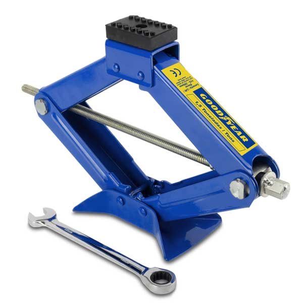 8430046151985Datos logísticosCaracterísticasAnexosGato de tijera Goodyear Evo de 1,5 toneladas. Gato de alta capacidad de carga de hasta 1500Kg.Nuevo sistema elevador con llave de carraca que reduce el esfuerzo y tiempo considerablemente en comparación a los gatos de tijera tradicionales. Mas fuerte, más seguro, más resistente, más rápido.Gracias a su distancia de trabajo de entre 115mm y 390mm. es aducuado para la mayoría de vehículos del mercado. Estabilidad mejorada en la base gracias a la fabricación de aleación de acero que soporta mejor las presiones y resistente a la corrosión garantizando un soporte fuerte y seguro.Despreocupese de dañar el vehículo gracias a su goma de alta densidad en el cabezal del soporte que garantiza que la carrocería no sufra ningún daño.Es ideal y recomendable llevarlo siempre en el maletero del vehículo para hacer el cambio de rueda más rápido y más seguro. Gato de tijera que cumple con la normativa CE. Siga siempre las instrucciones de uso del fabricante.