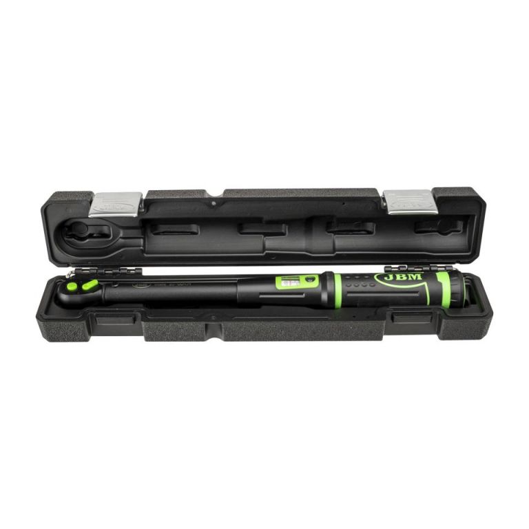 8435034546965DetallesLlave dinamométrica de alta precisión, ideal para automoción, mecánica industrial y mantenimiento técnico.Diseñada para aplicaciones de apriete controlado en entornos profesionales. Fabricada en acero Cr-V/Cr-Mo para máxima resistencia y durabilidad.Rango de trabajo: 20–120 Nm, con escala grabada de fácil lectura.Peso ligero y longitud de 420 mm que garantiza un par óptimo con menor esfuerzo.
